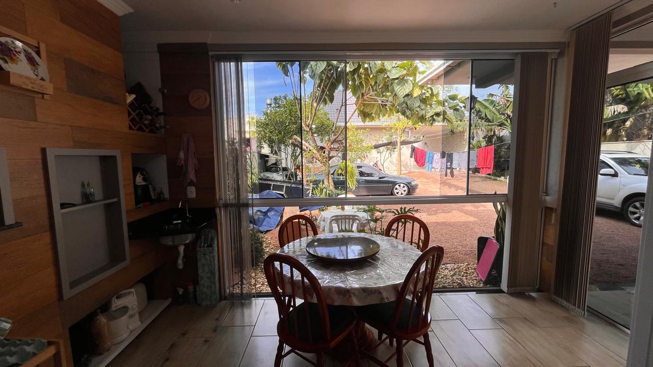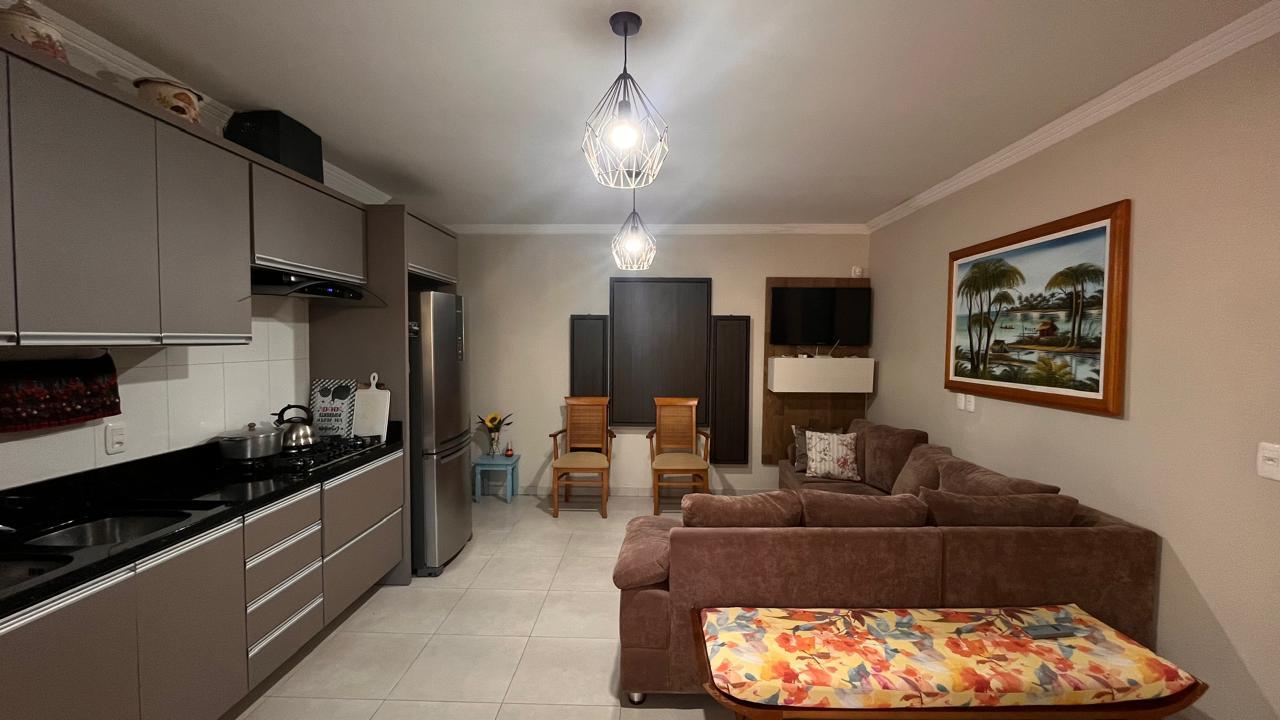 Quiosque com 100m² com cozinha sob medida, ar condicionado,, banheiro mobiliado, 01 dormitório, garagem com lavanderia, churrasqueira, lareira e espaço gourmet.